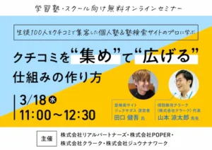 当日ご参加が難しかった方、また説明会後に「自塾の場合はどうなるか」「もう少し詳しく聞いてみたい」と感じられた方向けに、個別でのオンライン説明の時間をご用意しております。